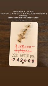 22kベビーファットクロスピアスw/アフターパヴェダイヤ
