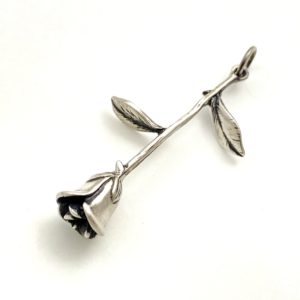 こちらも良くある薔薇のデザインとは違い、ツボミの状態で、さらにトゲ付きの茎まで表現しています。
